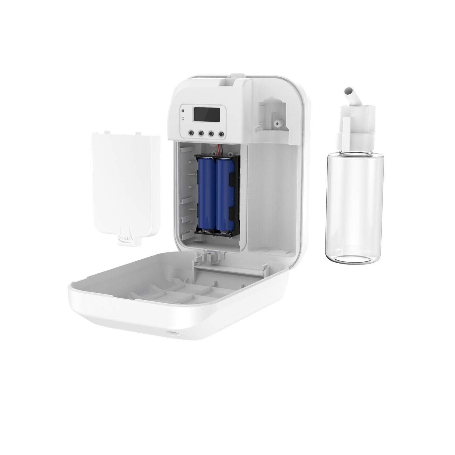 ج: يكمن السر في نظام التحكم الذكي بالتوقيت. فبدلاً من التشغيل المستمر، تتم برمجة الجهاز عبر التطبيق لإطلاق العطر فقط عند الحاجة. هذه الكفاءة، بالإضافة إلى بطاريتنا عالية السعة، تُعزز هذه الميزة.